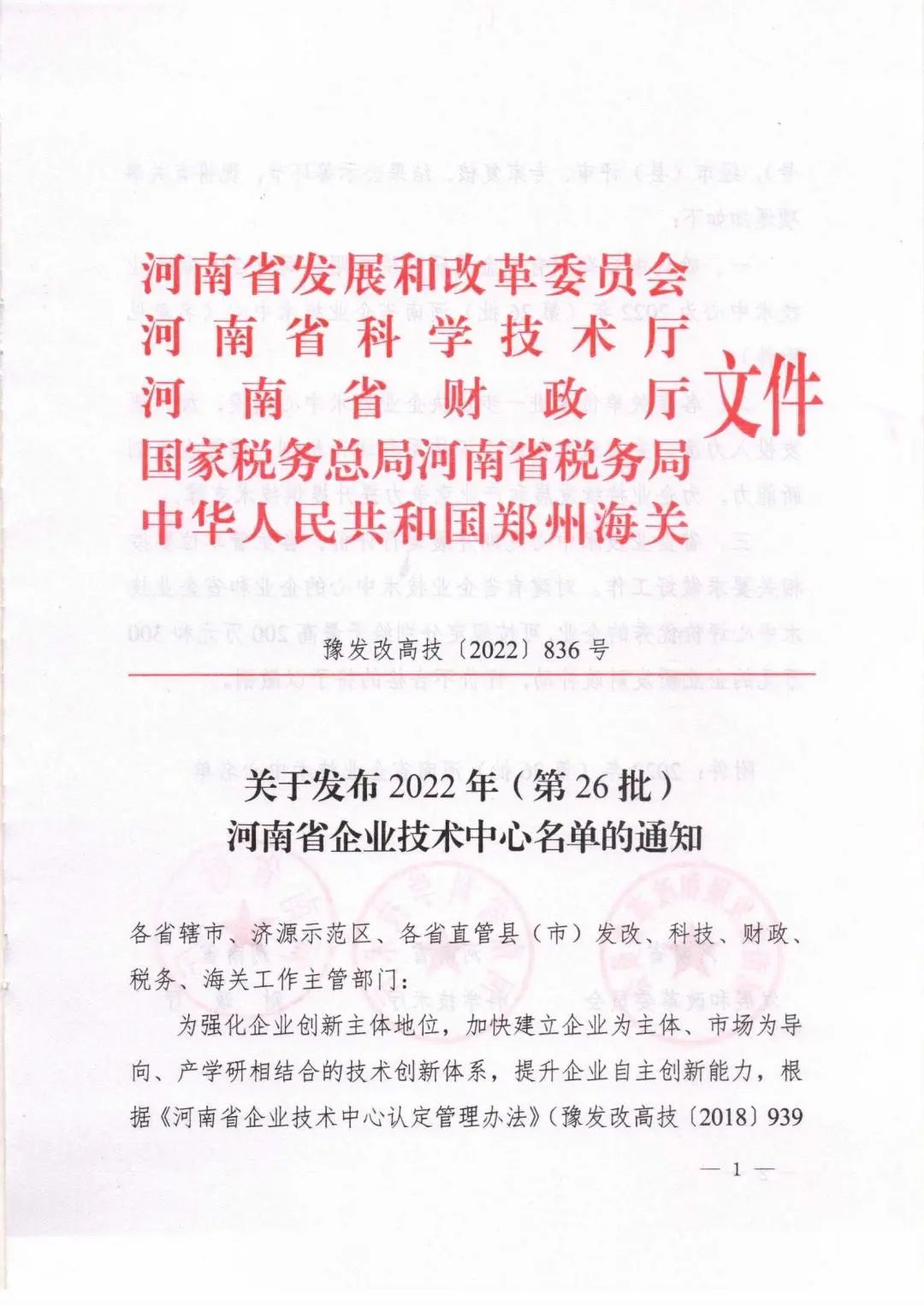 近日,河南省發(fā)改委、科技廳等五個(gè)權(quán)威部門聯(lián)合發(fā)文,公司企業(yè)技術(shù)中心獲批為 河南省企業(yè)技術(shù)中心,是繼2021年度獲批信陽市施工技術(shù)工程